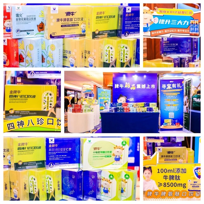 新升级的脾牛脾氨肽口饮液凭借 “100ml 含牛脾肽≥850mg” 的硬核营养指标引爆全场,新品四神八珍口饮液、脑肽 VB12 益智仁饮也凭借精准的营养定位与优质配方,收获现场嘉宾及渠道伙伴的一致好评。