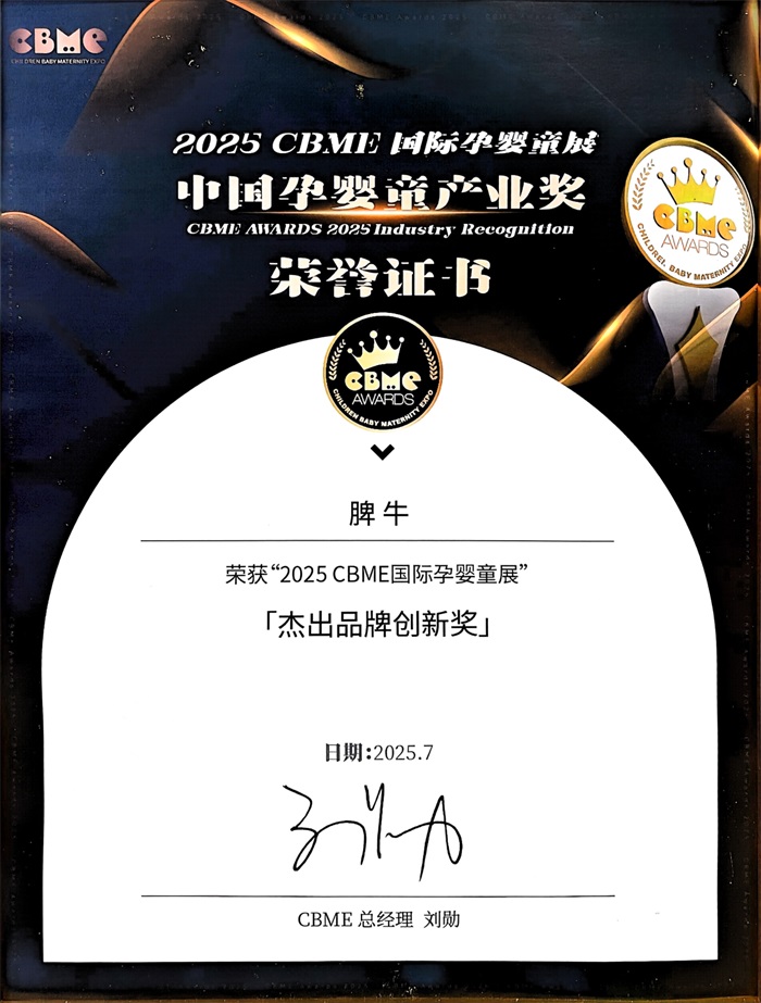 2025年7月16-18日,第25届上海CBME孕婴童展落下帷幕。在这场汇聚全球3000+展商、4500+品牌与10万+观众的行业盛会上,脾牛国际受邀参展,并于7-1A02展位交出亮眼答卷——两大创新项目引爆现场,爆款产品与新品齐亮相引追捧,签约不断,更凭借在健脾领域的持续创新与行业贡献,荣获 “2025CBME 国际孕婴童展杰出品牌创新奖”,用荣誉印证脾牛在健脾领域的硬核实力。