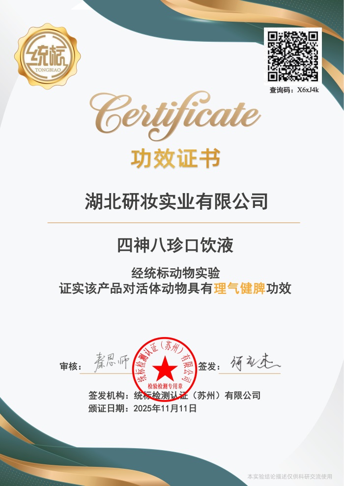 功效认证:持有理气健脾功效认证证书,产品效用经专业检测验证,养护脾胃更有依据;